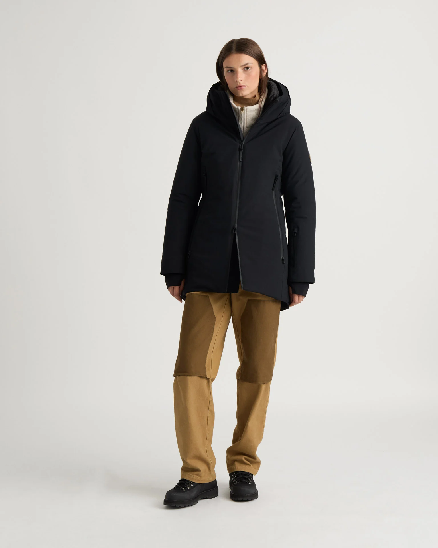 Laurier est un manteau isolé semi-ajusté avec un capuchon fixe, un col intérieur, des poignets coupe-vent et des poches zippées.