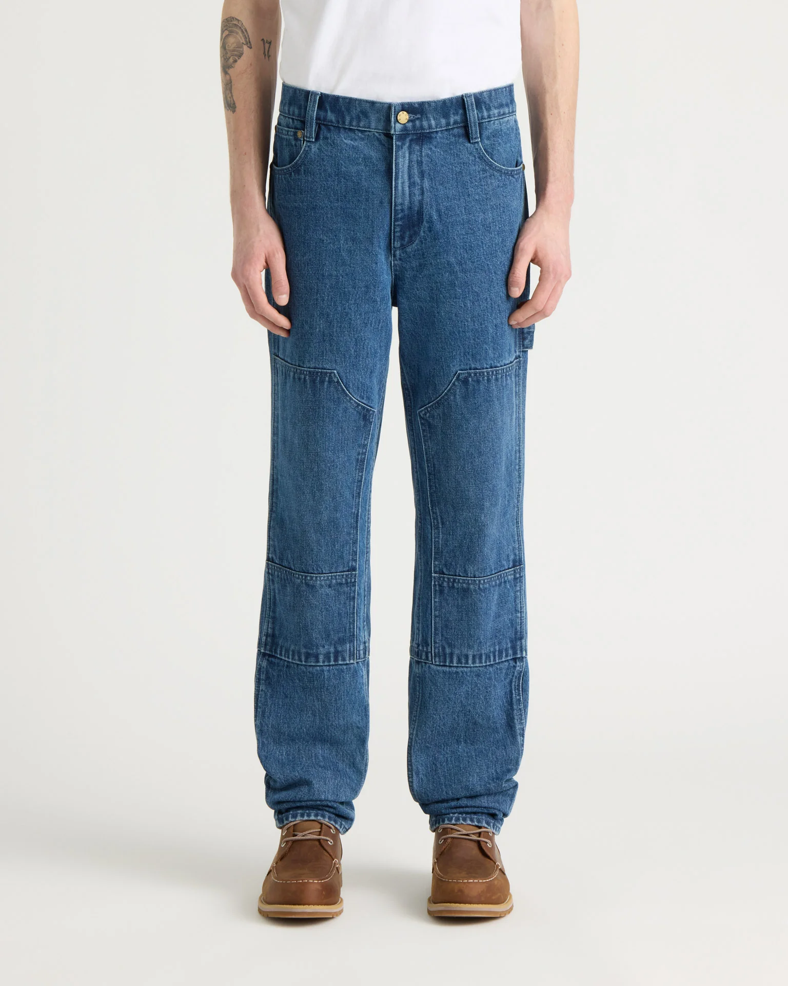 Gatineau est un pantalon en denim à jambe droite avec des empiècements style charpentier.